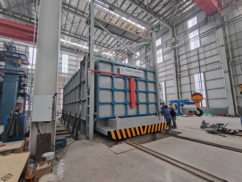 - 台车:台车是承载工件的移动平台,其结构多采用双层平衡架车轮对,并配有耐热铸铁护板。台车表面覆盖有耐火材料,以承受高温和工件的重量。